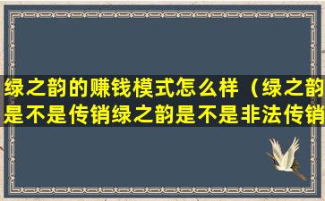 关于“绿之韵”是否为传销,这需要根据其具体的经营模式和行为来判断。如果“绿之韵”的经营模式涉及以下特征,那么它可能涉嫌传销: