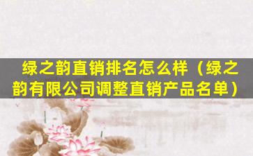绿之韵(GreenV)是一家中国的直销公司,主要从事健康产品的研发、生产和销售。如果您想了解绿之韵在直销行业中的具体排名,建议您查阅最新的直销行业报告、市场研究数据或相关评估机构的排名。这些信息通常可以在直销行业协会、商业新闻网站、市场研究公司的报告或公司的官方公告中找到。