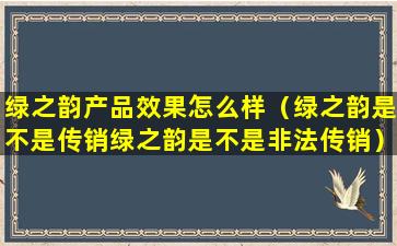 关于“绿之韵”是否为传销或非法传销的问题,我无法提供直接的答案,因为这需要根据具体的国家或地区的法律法规以及该公司的实际运营情况来判断。在中国,根据《中华人民共和国反不正当竞争法》和《中华人民共和国刑法》的相关规定,传销是被明令禁止的。