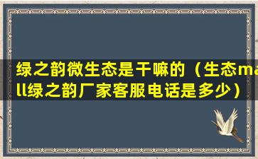 截至我所知的信息更新日期(2023年),“绿之韵微生态”并不是一个广为人知的品牌或产品名称。它可能是一个特定地区或特定群体中使用的品牌,或者是一个新兴的、尚未广泛推广的品牌。由于信息有限,我无法提供关于“绿之韵微生态”具体是做什么的详细信息。