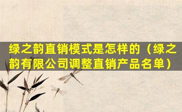 截至我的知识更新日期(2023年),绿之韵(Green Rhythm)并不是一个广为人知的直销品牌,因此我无法提供关于其直销模式的详细信息。直销模式通常涉及公司直接向消费者销售产品或服务,而不是通过传统的零售渠道。直销公司通常会招募独立的销售代表,这些代表通过个人网络、社交媒体或其他方式推广和销售产品。