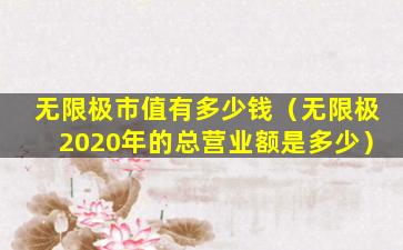 无限极是一家中国的直销公司,主要从事健康产品的销售。关于无限极2020年的总营业额,由于我无法访问最新的数据,因此无法提供确切的数字。通常,这类公司的财务数据不会实时公开,而是会在年度报告或财务公告中披露。如果您需要无限极2020年的确切营业额数据,建议您查阅该公司的官方财务报告或通过官方渠道获取最新信息。
