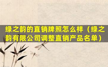 截至我的知识更新日期(2023年),绿之韵(Green Essence)并不是一个广为人知的直销公司,因此我无法提供关于其直销牌照的具体信息。在中国,直销牌照是由中国国家市场监督管理总局颁发的,只有获得牌照的公司才能在中国合法开展直销业务。
