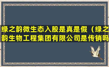 关于“绿之韵微生态入股”的信息,我无法提供确切的真伪判断,因为这需要具体的公司信息和官方公告来验证。在中国,任何公司的股权变动、投资入股等行为都应当遵循相关法律法规,并通过正规渠道进行公告。