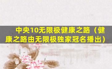 您提到的“中央10无限极健康之路”可能是指中国中央电视台(CCTV)的一个健康类节目,或者是与无限极公司相关的健康宣传活动。无限极是一家中国的直销公司,主要销售健康产品。