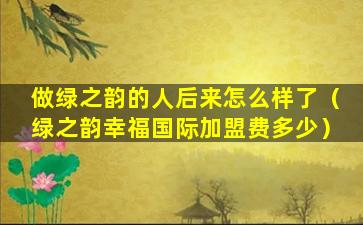 关于“做绿之韵的人后来怎么样了”这个问题,由于“绿之韵”可能指的是多个不同的事物,例如一个品牌、一个组织或者一个项目,而且没有具体的背景信息,我无法提供一个准确的答案。如果“绿之韵”是一个特定的公司或组织,那么其成员或员工的发展情况将取决于多种因素,包括个人的职业规划、公司的经营状况、行业趋势等。