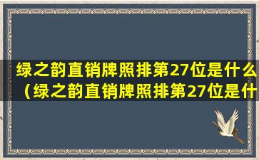 截至我所知的信息,绿之韵是一家中国的直销公司,它获得了中国商务部颁发的直销牌照。直销牌照的排名通常是根据公司获得牌照的时间顺序来排列的。如果绿之韵的直销牌照排名是第27位,这意味着它是第27家获得中国商务部直销牌照的公司。