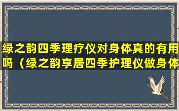 绿之韵四季理疗仪是一种声称能够通过物理疗法来改善身体状况的设备。这类设备通常会使用红外线、磁场、振动、热疗等技术,声称可以促进血液循环、缓解肌肉疼痛、改善睡眠质量等。