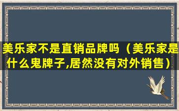 美乐家不是传统意义上的直销品牌,但其销售模式中包含了直销的一些元素,这也是为什么人们有时会将其与直销联系起来的原因。