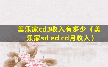 美乐家(Melaleuca)是一家美国的直销公司,主要销售健康、个人护理、家庭清洁和营养补充品等产品。在直销行业中,收入通常与个人的销售业绩、团队建设和管理能力有关。美乐家采用了一种称为“CD3”的级别,这是公司内部的一个业绩级别,代表“Customer Direct 3”,意味着个人或团队达到了一定的客户直接订购量。