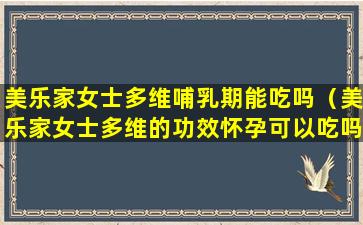 美乐家(Nature Made)是一家知名的营养补充品品牌,提供多种维生素和矿物质补充剂。关于“美乐家女士多维”是否适合哺乳期妇女食用,这取决于该产品的具体成分和配方。