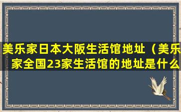 如果您想了解美乐家在日本大阪的具体生活馆或服务中心的地址,建议您直接访问美乐家的官方网站或联系美乐家的客户服务部门获取最准确和最新的信息。通常,这些信息会在公司的官方网站上公布,或者可以通过客户服务热线、电子邮件等方式获得。