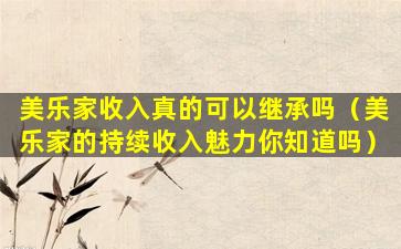 在中国,任何形式的商业活动都必须遵守国家的法律法规。关于“美乐家收入是否可以继承”的问题,首先需要明确的是,任何商业收入都应当合法合规,且在法律允许的范围内进行。在中国,继承法规定了合法财产的继承权,但前提是这些财产来源合法、纳税合规。因此,如果“美乐家”指的是一个合法注册并运营的企业,其合法收入在符合中国法律规定的条件下是可以继承的。