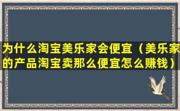 淘宝上的美乐家产品价格可能较低的原因可能有以下几点: