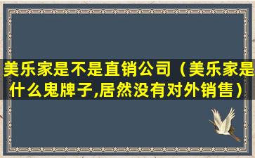 如果您对美乐家或其销售模式有进一步的疑问,建议直接咨询公司或查阅相关的法律法规,以获得准确的信息。