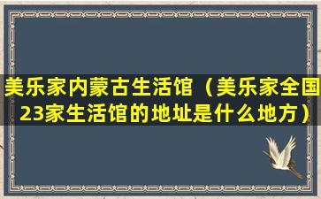 如果您想了解更多关于美乐家内蒙古生活馆的具体信息,如地址、营业时间或产品种类等,建议直接联系美乐家官方客服或访问其官方网站获取最新和最准确的信息。由于我的知识截止日期是2023年,我无法提供该生活馆的实时信息。