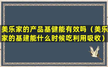 美乐家(Melaleuca)是一家美国的直销公司,主要销售健康、个人护理、家庭清洁等产品。关于“美乐家的基建能”这一表述,可能存在误解或信息不明确。如果您是指美乐家生产的某种营养补充品或健康产品,并且该产品含有能够促进身体吸收利用的营养成分,那么通常这类产品的使用建议会在产品包装或说明书上明确标注。