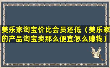 淘宝是中国的一个大型在线购物平台,上面有许多卖家可能会销售各种品牌的产品,包括美乐家的产品。如果淘宝上的价格比美乐家会员的价格还要低,这可能是由于以下几个原因: