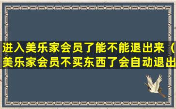 在中国,消费者权益受到法律的保护。如果您在美乐家(假设这是一个商业实体)成为了会员,并且希望退出,您应当首先查看该公司的会员协议或服务条款,了解退出的具体流程和条件。通常情况下,如果公司有明确的退出政策,您可以按照规定程序申请退出。
