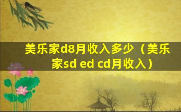 关于“美乐家d8”的具体月收入,由于缺乏具体的上下文信息,我无法提供准确的答案。如果“美乐家d8”是指某个特定的产品、服务或者个人,其收入会受到多种因素的影响,包括但不限于市场需求、销售策略、个人能力、地区差异等。