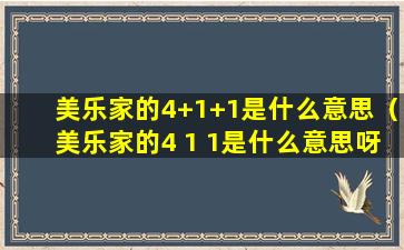 如果这个表述是指美乐家的某种特定的营销策略或者产品推荐,它可能代表了某种产品组合或者购买建议。例如,“4+1+1”可能意味着推荐消费者购买四种主要产品加上一种辅助产品,再加上一种特殊产品。但这只是一个假设,具体含义需要根据美乐家的官方信息或者具体的营销材料来确定。