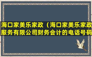 很抱歉,我无法提供海口家美乐家政服务有限公司财务会计的电话号码。如果您需要联系该公司,建议您通过官方网站、官方客服电话或其他官方渠道获取联系方式。请注意保护个人隐私,不要在公共平台上泄露或索取他人的私人信息。