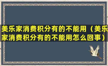 如果您遇到“美乐家消费积分有的不能用”的情况,可能有以下几种原因: