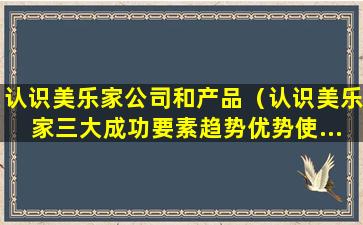美乐家(Melaleuca)是一家美国的直销公司,以销售健康、个人护理、家庭清洁和营养补充品等产品而闻名。要认识美乐家的三大成功要素,我们需要了解其商业模式、产品特性和市场策略。以下是美乐家可能的成功要素: