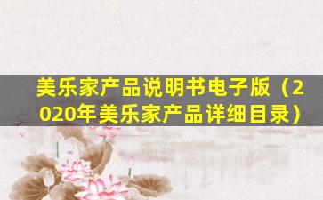 请确保在获取和使用产品说明书时遵守相关的版权法规和公司政策。如果您是美乐家的会员或客户,您应该能够通过您的会员账户或客户服务渠道获取所需的产品信息。