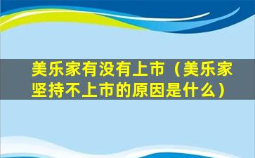 如果您想了解美乐家的最新情况,建议直接访问美乐家的官方网站或联系其官方客服获取最新信息。由于我的知识截止日期是2023年,如果在此之后美乐家发生了上市或其他重大变化,我将无法提供相关信息。