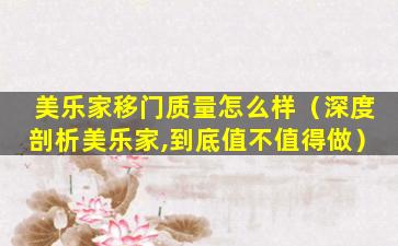 美乐家是中国的一个家居品牌,主要生产销售各种家居产品,包括移门。在知乎上,用户们对于美乐家移门的质量评价褒贬不一。一些用户表示美乐家的移门质量不错,性价比高,安装服务也比较到位。但也有用户反映遇到了质量问题,比如门板变形、轨道不顺畅等。
