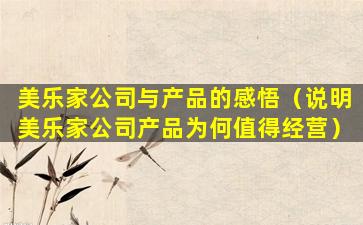 对于美乐家公司的感悟,可以从以下几个方面来考虑: