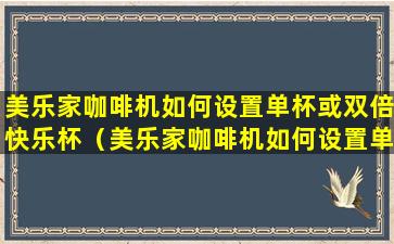 美乐家(Melitta)咖啡机通常具有多种设置选项,包括单杯和双倍快乐杯(双份)功能。要设置这些功能,请按照以下步骤操作:
