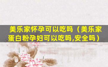 美乐家(Melaleuca)是一家美国的直销公司,主要销售各种健康、个人护理、家庭清洁和营养补充品。如果您提到的“美乐家”是指该公司的产品,那么在怀孕期间是否可以食用其产品,需要根据具体产品的成分和安全性来判断。