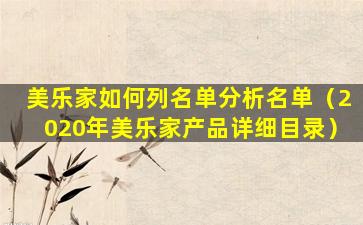 很抱歉,我无法提供2020年美乐家(Melaleuca)产品的详细目录,因为我的知识截止日期是2023年,而且我无法访问实时的互联网资源来获取最新的产品目录。美乐家是一家美国的直销公司,以销售健康、个人护理、家庭清洁和营养补充品等产品而闻名。