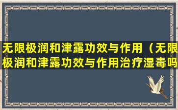 无限极润和津露是无限极公司生产的一款产品,它通常被宣传为具有滋润和保湿的功效。根据中国的法律法规和市场监管政策,任何保健食品或化妆品都不能宣称具有治疗疾病的功能。无限极润和津露作为一款化妆品,其功效应当是基于保湿、滋润等美容护肤方面的效果。