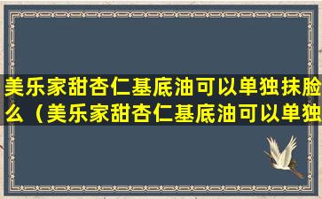 甜杏仁油可以单独用于脸部护肤,但需要根据个人肤质和反应来调整使用方法和频率。如果有任何不适,应立即停止使用,并咨询皮肤科医生的建议。