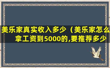 美乐家(Melaleuca)是一家美国的直销公司,主要销售健康、个人护理、家庭清洁等产品。在美乐家,会员可以通过销售产品和推荐新会员来赚取收入。要达到月收入5000元,需要根据美乐家的薪酬计划来计算,这个计划通常包括个人销售、团队销售和领导奖金等多个方面。