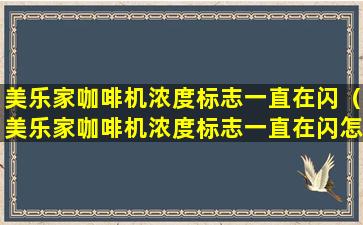 如果您的“美乐家”(Melitta)咖啡机的浓度标志一直在闪烁,这通常表示机器在某种程度上遇到了问题或需要用户的注意。以下是一些可能的原因和相应的解决步骤: