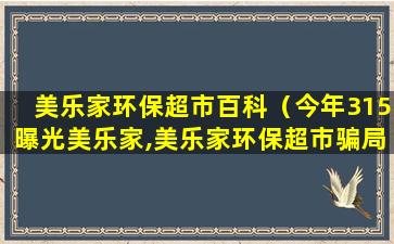 关于“今年315曝光美乐家,美乐家环保超市骗局”的说法,我无法提供具体的信息,因为我的知识截止日期是2023年4月,而且我无法访问实时数据或新闻报道。如果这个事件是在我的知识截止日期之后发生的,我将无法提供相关信息。