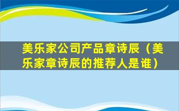 如果你对美乐家的产品或章诗辰有具体的疑问,建议直接联系美乐家公司或查找更多关于章诗辰的信息以获得准确的答案。