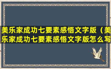 撰写关于美乐家成功七要素的感悟文字版时,可以从以下几个方面入手: