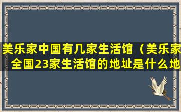 由于美乐家在中国的业务可能会随着时间而变化,包括新店的开设和旧店的关闭,具体的店铺数量和位置可能会有所不同。为了获取最准确的信息,建议直接访问美乐家中国的官方网站或联系他们的客服,以获取最新的生活馆地址和数量。
