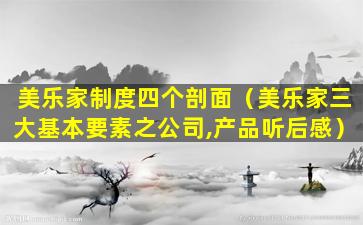 美乐家(Melaleuca)是一家美国的直销公司,主要销售健康、个人护理、家庭清洁和营养补充品等产品。关于“美乐家制度四个剖面”,这个表述并不是一个标准的术语或者广泛认可的概念。可能是指美乐家直销模式中的某些方面或者特点。