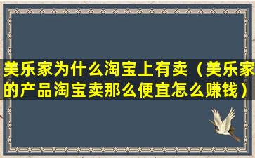 淘宝作为中国最大的在线购物平台之一,上面有很多个人卖家和店铺,他们可能会销售各种品牌的产品,包括美乐家的产品。这些卖家可能通过不同的渠道获得产品,然后在网上销售。