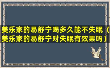 美乐家的易舒宁是一种含有褪黑素的产品,褪黑素是一种调节人体生物钟的激素,可以帮助改善睡眠质量。关于易舒宁喝多久能不失眠,这个问题的答案因人而异,因为每个人的身体状况、失眠原因、对褪黑素的反应等都不同。
