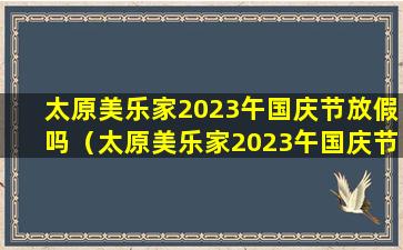 关于太原美乐家2023年国庆节是否放假的问题,我们应当遵循国家的法定节假日安排。国庆节是中国的法定假日,通常情况下,企业和机构会根据国家规定放假。但是,具体到太原美乐家是否放假,需要根据该企业的具体安排来确定。建议您直接咨询太原美乐家或查看其官方通知以获取准确信息。