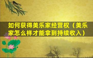 在中国,所有的商业活动都必须遵守国家的法律法规。关于“美乐家经营权”的问题,我们建议您通过合法的渠道,如咨询相关政府部门或专业的法律顾问,来了解如何合法合规地进行商业活动。我们坚决支持国家的法律法规,反对任何形式的非法商业行为。请广大网民朋友们也要自觉遵守法律法规,共同维护良好的网络环境。
