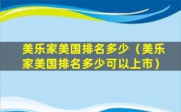 美乐家(Melaleuca, Inc.)是一家总部位于美国爱达荷州的大型直销公司,主要销售健康、个人护理、家庭清洁和营养补充品等产品。美乐家并非上市公司,而是一家私人控股公司,因此它没有在任何股票交易所上市,也就没有所谓的“美国排名”来决定其是否可以上市。