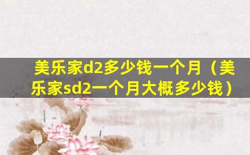 美乐家(Melaleuca)是一家美国的直销公司,主要销售健康、个人护理、家庭清洁等产品。关于“美乐家d2”这个产品,由于信息不明确,我无法提供具体的价格。通常,美乐家的产品价格会根据产品种类、购买数量以及是否为会员等因素有所不同。